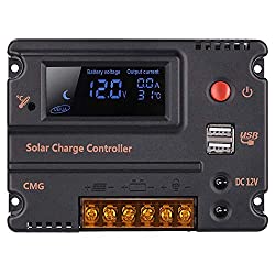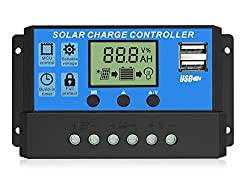 1. Regulador de batería del controlador de carga solar Potek de 10 amperios / 130 vatios y 12 voltios para panel solar