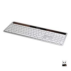 - Se puede cargar a través de cualquier fuente de luz, incluida la iluminación interior, con una batería de larga duración que puede mantener el teclado encendido durante al menos tres meses.