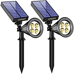 Estas luces son completamente inalámbricas, funcionan con una batería recargable de iones de litio que funciona con energía solar, que se enciende a través de 4 LED, y son completamente resistentes a la intemperie.